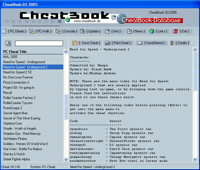 CheatBook-DataBase 2002 or the CheatBook-DataBase 2003 or the new version