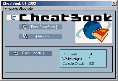 you have installed the CheatBook-DataBase 2001 v4.0 or the