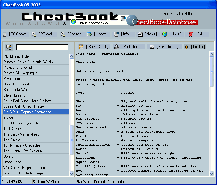 CheatBook-DataBase 2002 or the CheatBook-DataBase 2003 or the
