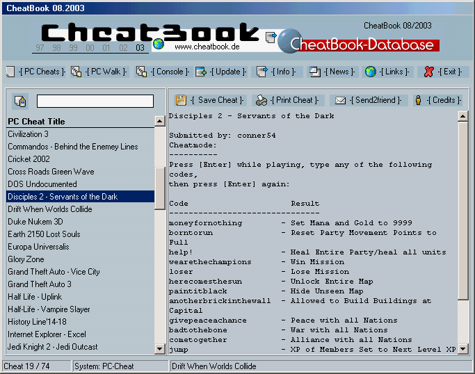 CheatBook-DataBase 2002 or the new version CheatBook-dataBase 2003 you will be
