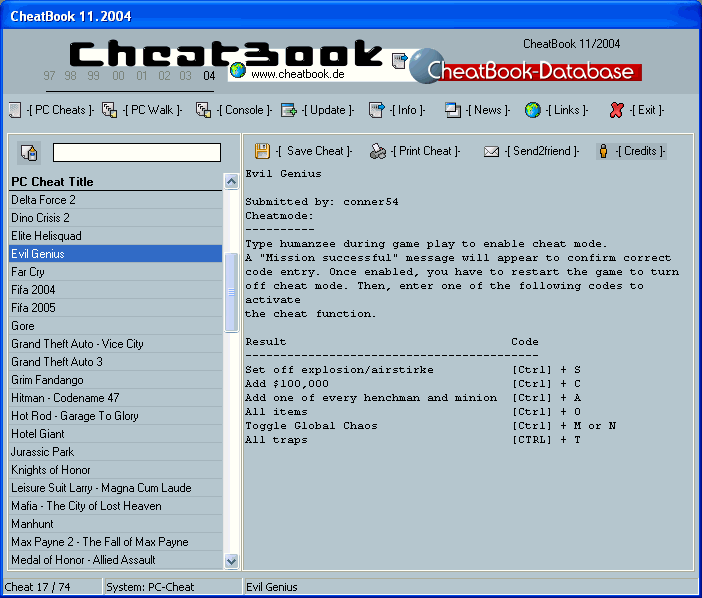 CheatBook-DataBase 2002 or the CheatBook-DataBase 2003 or the new version
